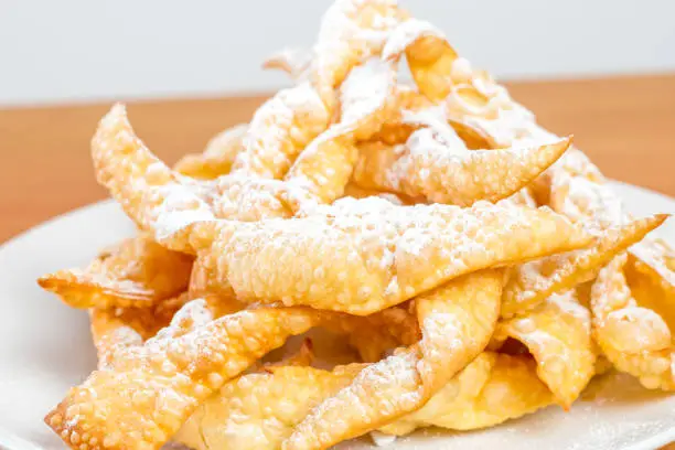 Le chiacchiere sono uno dei simboli più gioiosi e fragranti del Carnevale italiano, un dolce che incarna la leggerezza e l’allegria tipiche di questa festa. Sottilissime sfoglie di pasta, lavorate con cura e maestria, vengono fritte fino a diventare croccanti nuvole dorate, leggere come una risata e friabili al primo morso. Il loro profumo avvolgente si diffonde nella cucina mentre sfrigolano nell’olio caldo, promettendo un piacere irresistibile. Una volta pronte, vengono cosparse da una pioggia di zucchero a velo che ricorda la neve più soffice, donando loro un aspetto quasi etereo. Al palato, le chiacchiere sorprendono per il contrasto tra la croccantezza della sfoglia e la dolcezza delicata dello zucchero, regalando una sensazione di festa e convivialità. Ogni regione d’Italia ha la sua variante, ma ovunque vengano preparate, restano un invito a condividere sorrisi e racconti intorno alla tavola. Le chiacchiere sono molto più di un semplice dolce: sono il ricordo di tradizioni antiche, di mani che impastano e di famiglie riunite, un piccolo grande piacere che riporta alla leggerezza dell’infanzia e alla magia del Carnevale.