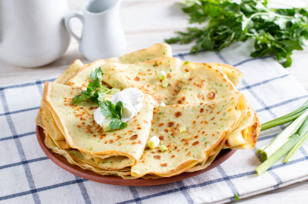 - Versare un mestolo di pastella nella padella e cuocere la crepe su entrambi i lati fino a doratura.