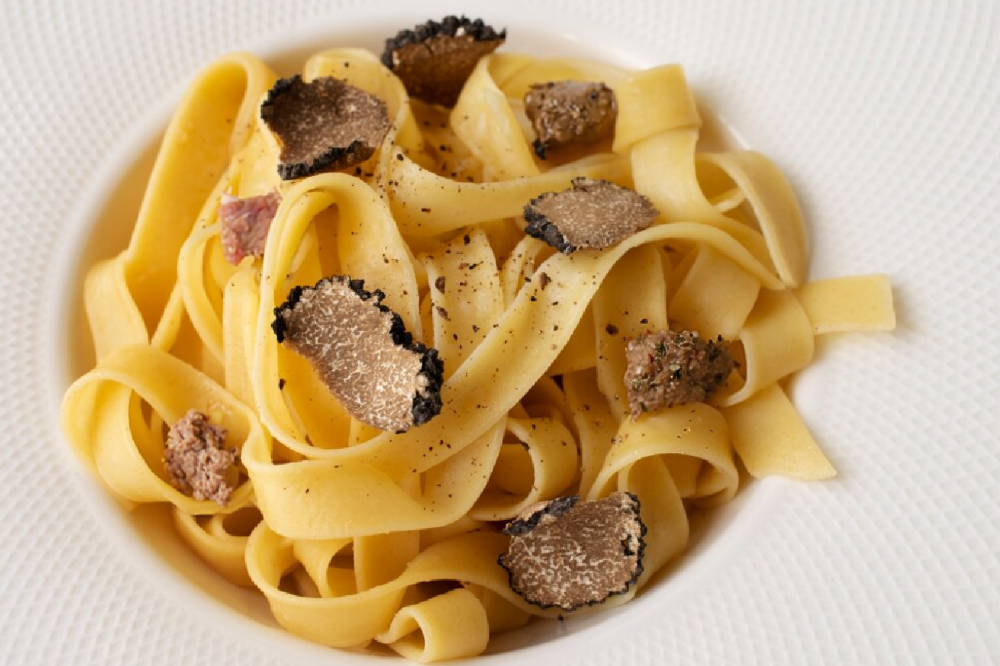 - Quando il piatto è pronto, aggiungere altro tartufo, basilico e mantecare con parmigiano fuori dal fuoco.
