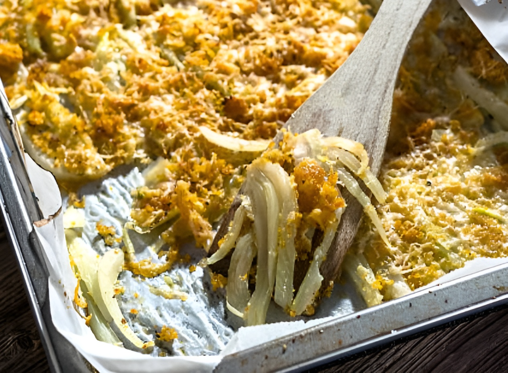 - Cospargi il finocchio con il pangrattato e il parmigiano grattugiato.