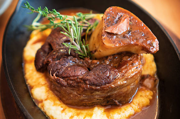 L’Ossobuco alla Milanese è un trionfo della cucina lombarda, un piatto che racconta la storia e la tradizione di Milano attraverso i suoi sapori intensi e avvolgenti. Il protagonista è il garretto di vitello, tagliato spesso e cucinato lentamente fino a raggiungere una straordinaria morbidezza, tanto che la carne si stacca con facilità dall’osso, rivelando al centro l’irresistibile midollo, vera delizia per i buongustai. La cottura avviene in un ricco intingolo di cipolla, carota e sedano, sfumato con vino bianco e impreziosito da un brodo profumato che lega tutti gli ingredienti in un abbraccio armonioso. A completare il piatto, la gremolada, una fresca e vivace miscela di scorza di limone, aglio e prezzemolo, che dona una nota agrumata e fragrante, esaltando la profondità del sapore della carne. Tradizionalmente servito accanto a un cremoso risotto allo zafferano, l’Ossobuco alla Milanese è una sinfonia di consistenze e aromi, capace di evocare il calore delle tavole familiari e l’eleganza delle cucine meneghine. Ogni boccone regala un viaggio sensoriale, un incontro memorabile tra semplicità e raffinatezza.