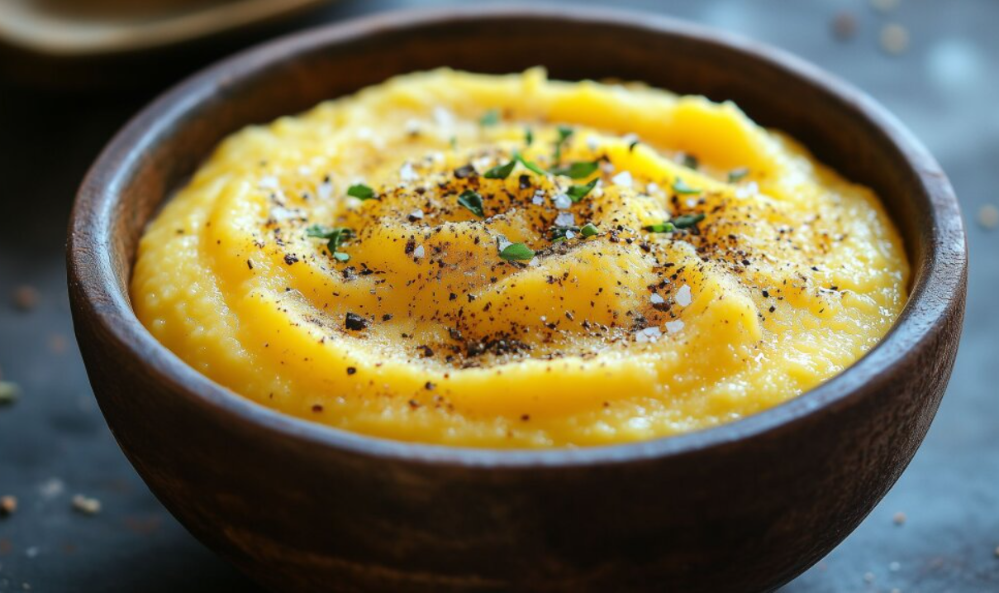La polenta è un piatto che racchiude il calore delle tradizioni contadine, un viaggio sensoriale tra i campi dorati del mais e le valli del Nord Italia. La sua consistenza cremosa e avvolgente nasce dalla lenta cottura della farina di mais nell’acqua bollente, mescolata con pazienza finché ogni granello si trasforma in una morbida armonia dorata. Appena servita, sprigiona un profumo rustico e rassicurante che richiama le cucine di montagna e le tavolate familiari. Semplice ma versatile, la polenta può essere gustata calda e fluida, magari accompagnata da un ricco sugo di funghi, da spezzatino di carne o da formaggi fusi che si sciolgono sulla sua superficie. Una volta raffreddata, si fa più soda e si presta a essere grigliata o fritta, diventando croccante fuori e tenera all’interno. Ogni boccone racconta storie di convivialità e di gesti antichi, portando con sé la genuinità degli ingredienti e l’amore per la cucina autentica. La polenta, con la sua semplicità e il suo sapore deciso, scalda il cuore e rievoca la bellezza delle cose fatte con lentezza e passione.