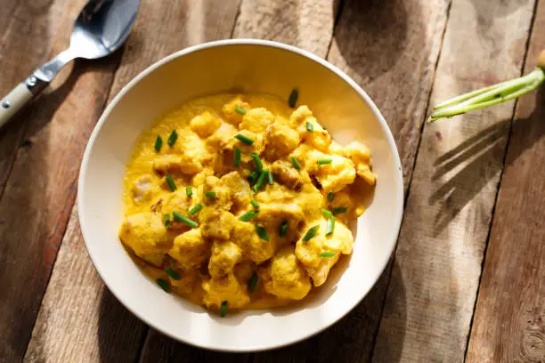 - Aggiungi i cubetti di pollo e cuoci fino a quando sono dorati su tutti i lati.