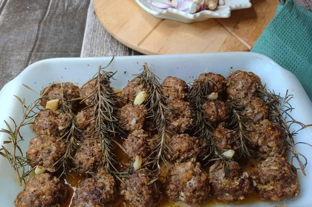 - In una ciotola, mescolare la carne macinata con il pane grattugiato, l'uovo, il rosmarino tritato, l'aglio tritato, il sale e il pepe.