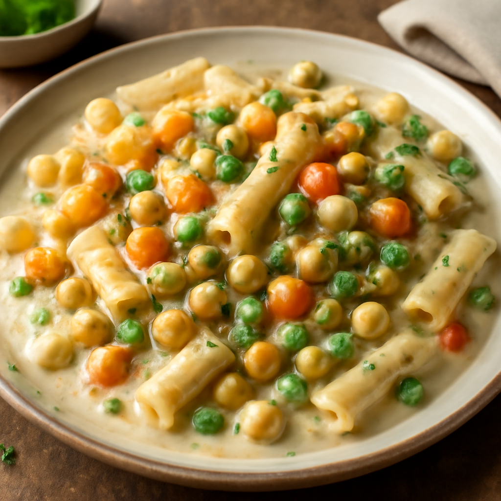 Pasta cremosa con carote, legumi e salsa