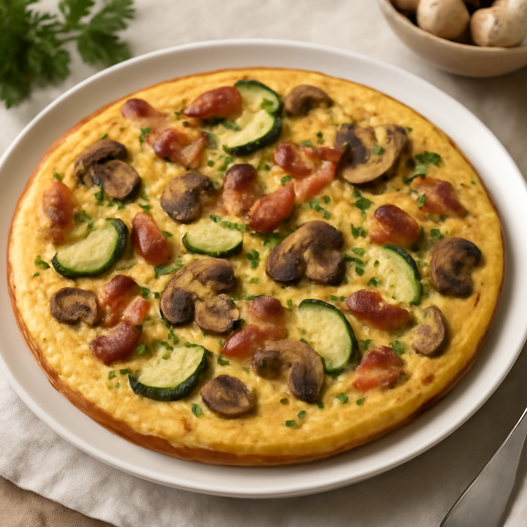 Frittata al forno con pancetta, zucchine e funghi