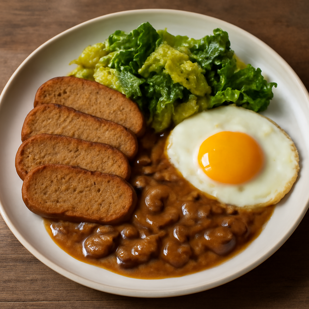 - 10.Impiatta il seitan con cavolo e sugo di funghi, aggiungi l'uovo sodo sopra e servi caldo.100 grammiSseitan80 grammiCcavolo verza100 grammiSsugo di funghi1 pezziUuovo