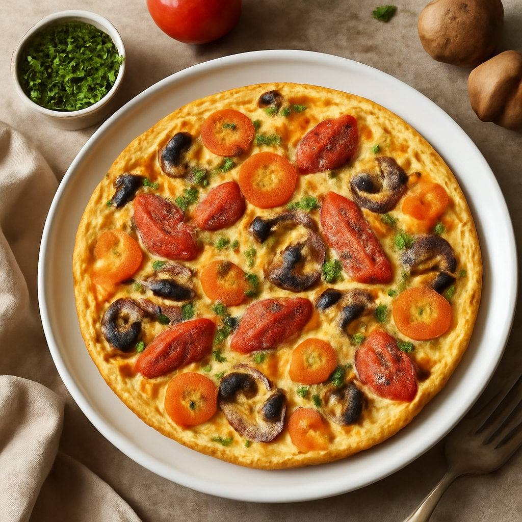 Frittata con carote, pomodori e funghi