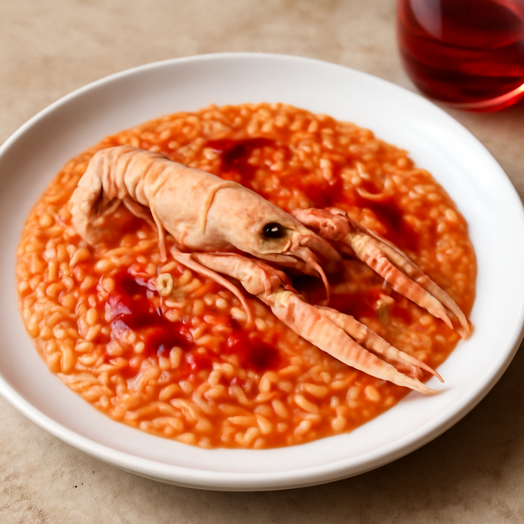 - 7.A metà cottura, aggiungi le code di scampi tagliate a pezzetti.4 pezziSscampi freschi