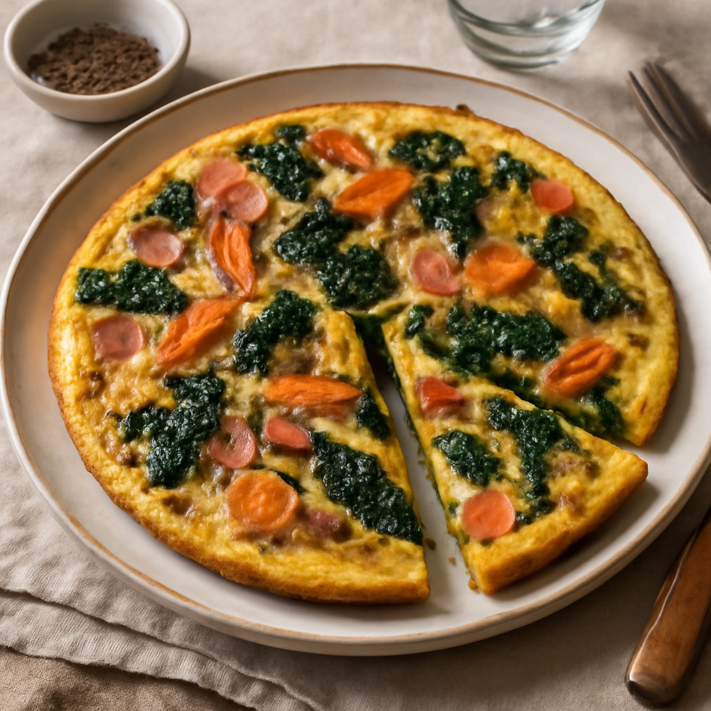 Frittata con prosciutto, carote e cavolo nero