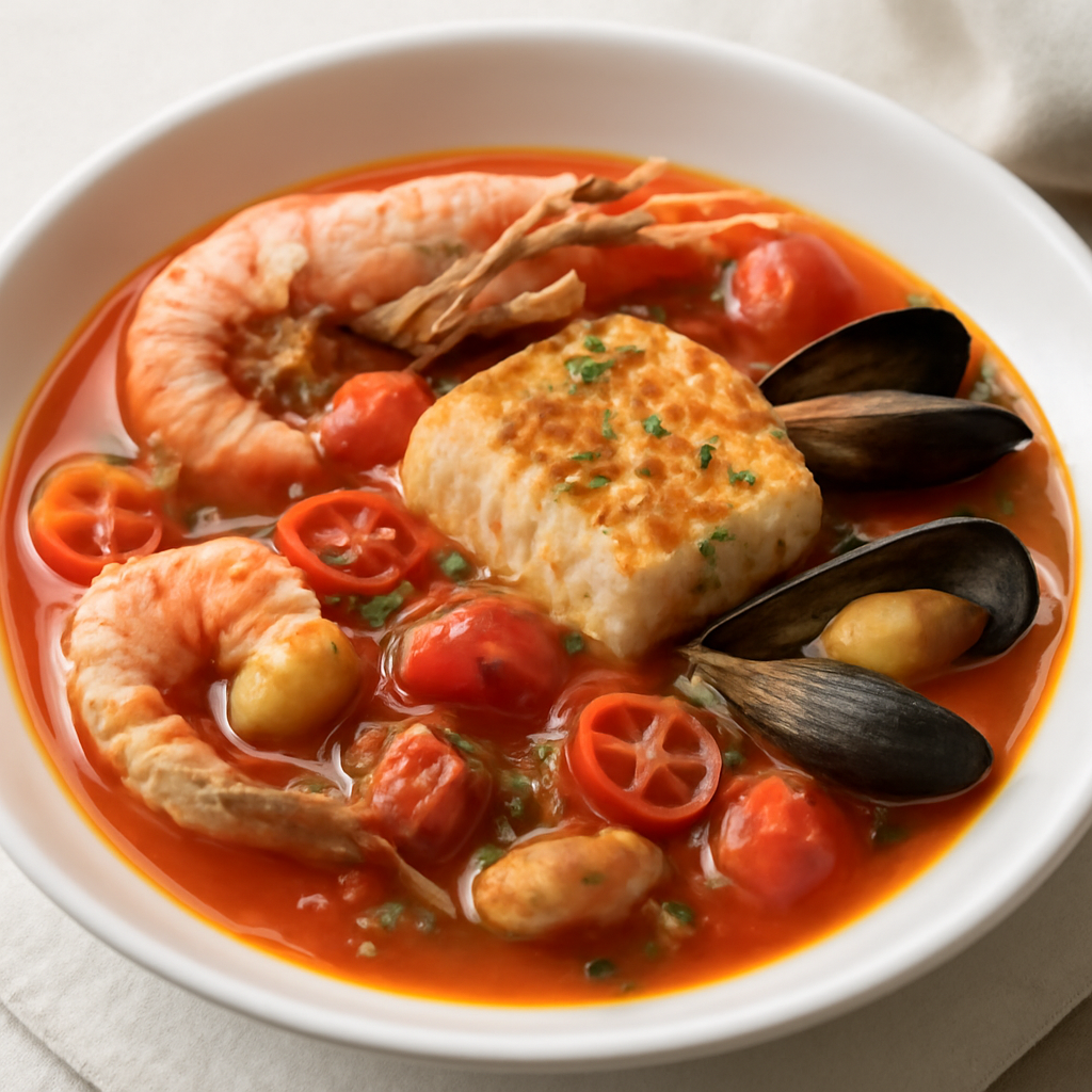 Zuppetta di pesce con pomodorini e peperoncino