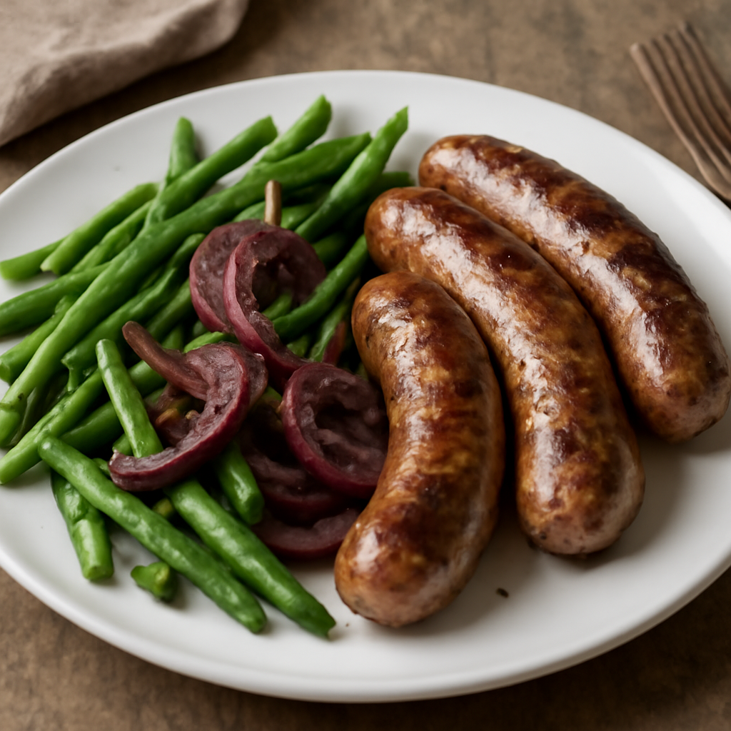 Salsiccia con fagiolini verdi e cipolle