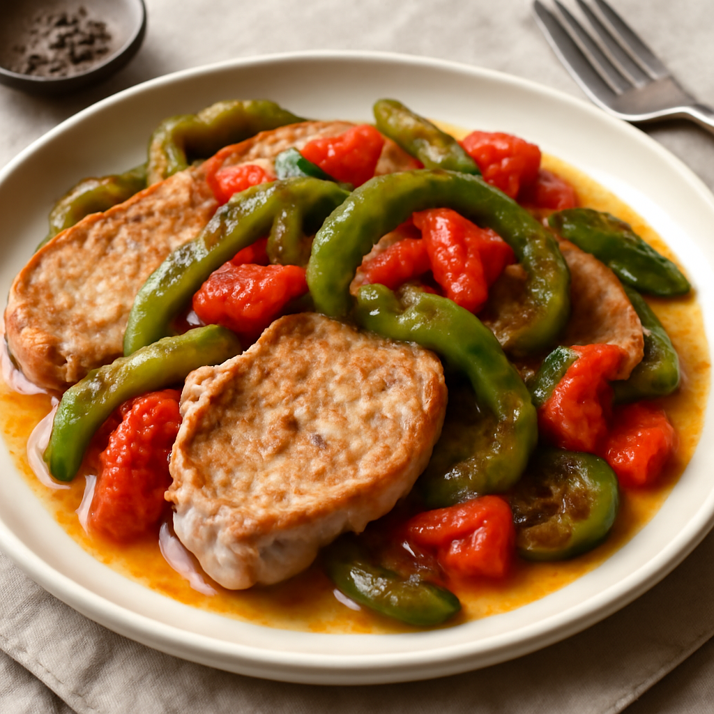 Fettine di maiale ai peperoni verdi e pomodori