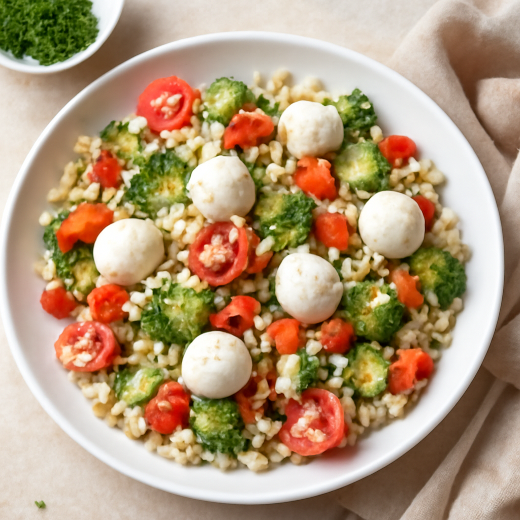 Insalata di orzo, verdure e mozzarella