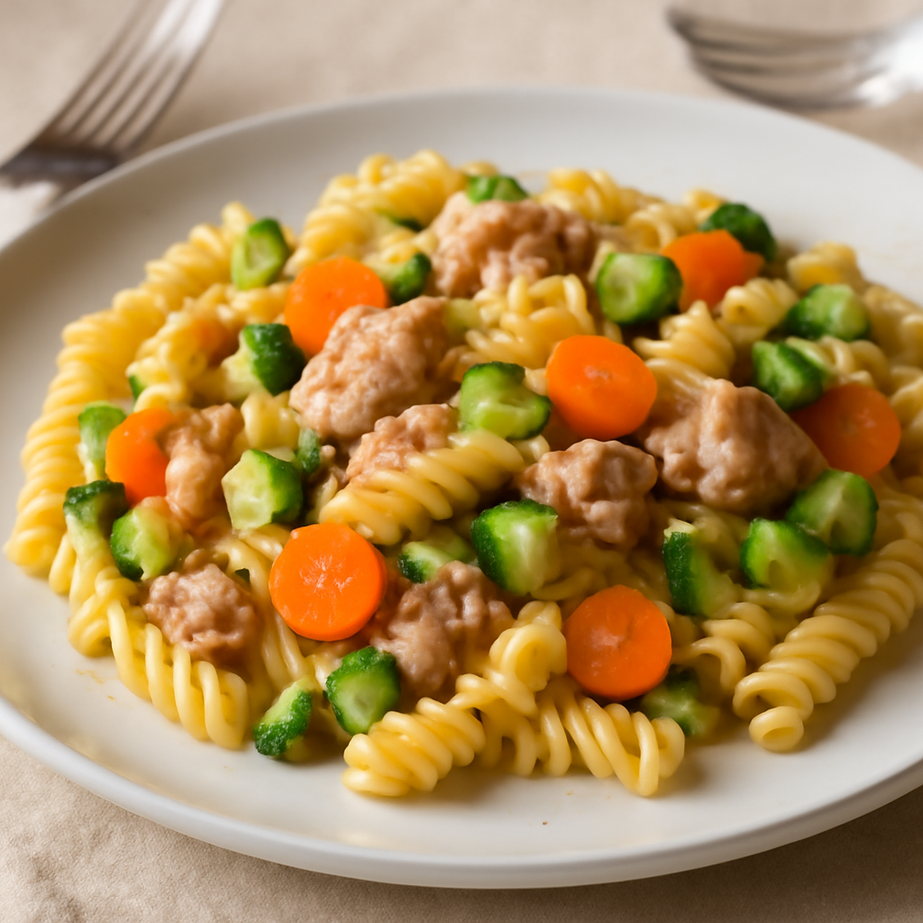 - 5.Scola il tonno dall'olio e aggiungilo alle verdure, mescolando bene.60 grammiTtonno sott'olio100 grammiVverdure surgelate miste