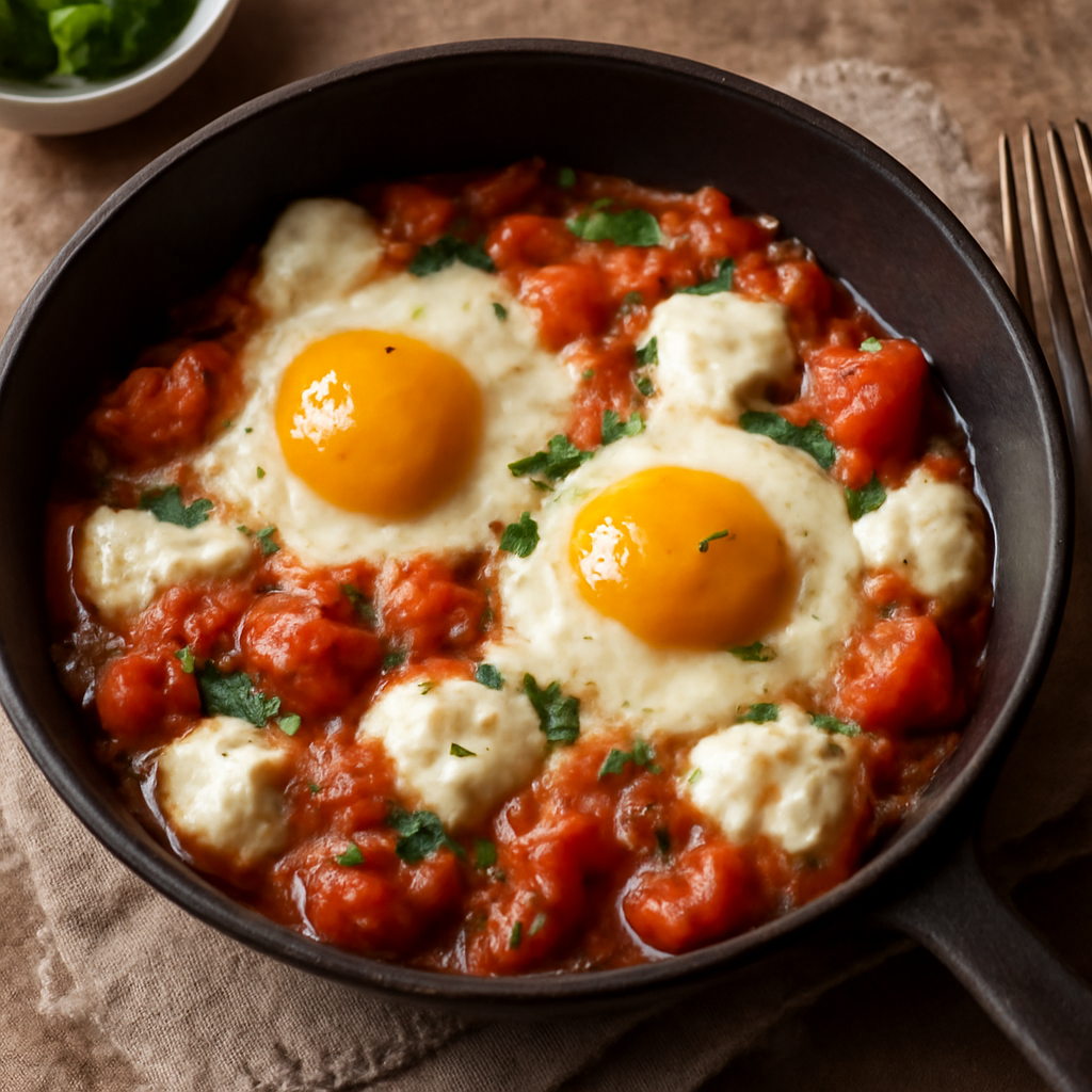 - 4.Rompi l'uovo sopra i pomodori e cuoci finché l'albume si rapprende ma il tuorlo resta morbido.1 pezziUuova2 pezziPpomodori