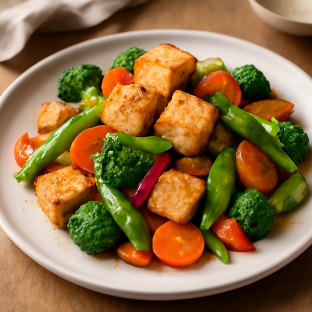 - 5.Unisci il tofu e continua a saltare per altri 3 minuti.100 grammiTtofu