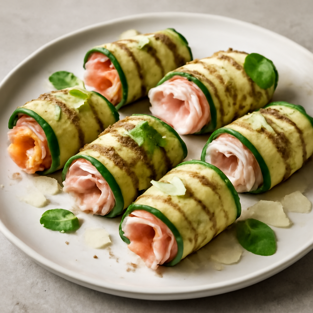 Involtini di zucchine con salmone affumicato, prosciutto cotto e grana