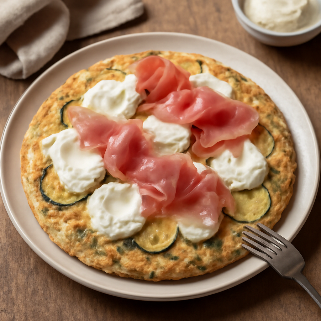 Frittata di zucchine con formaggio spalmabile e prosciutto crudo