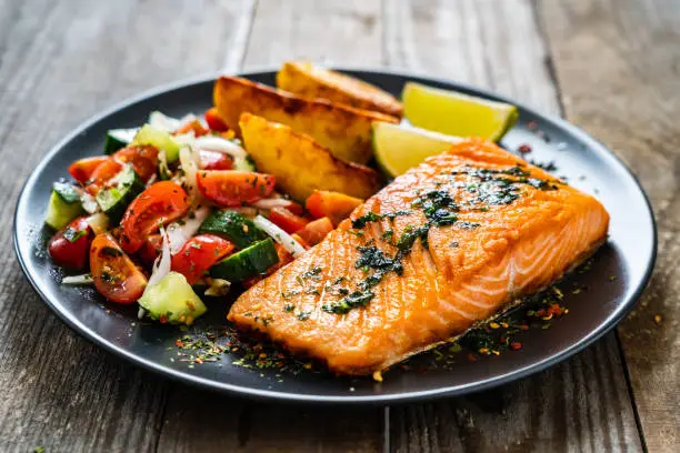 - Cuoci in forno per 20-25 minuti o fino a quando il salmone è cotto e le verdure sono tenere.