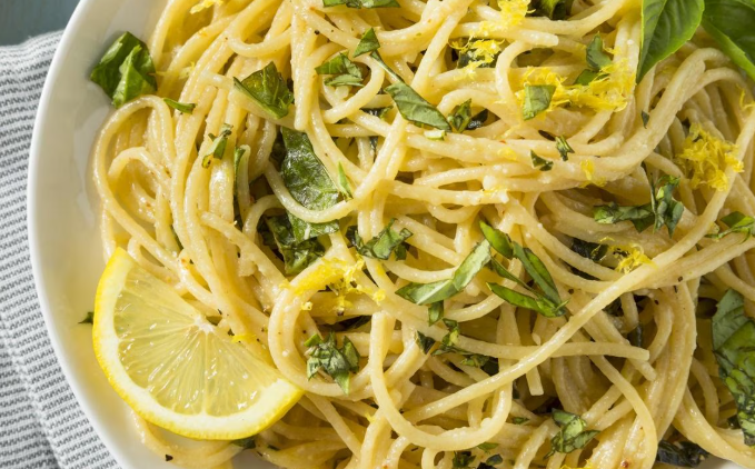 - A metà cottura degli spaghetti, scolarli e versarli in una padella con una parte dell'olio, portando a cottura gli spaghetti con l'acqua di cottura.