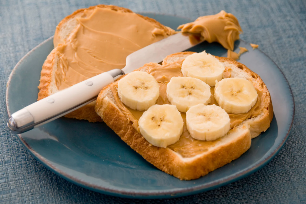 - Spalmare il burro d'arachidi su ciascuna fetta di pane tostato.
